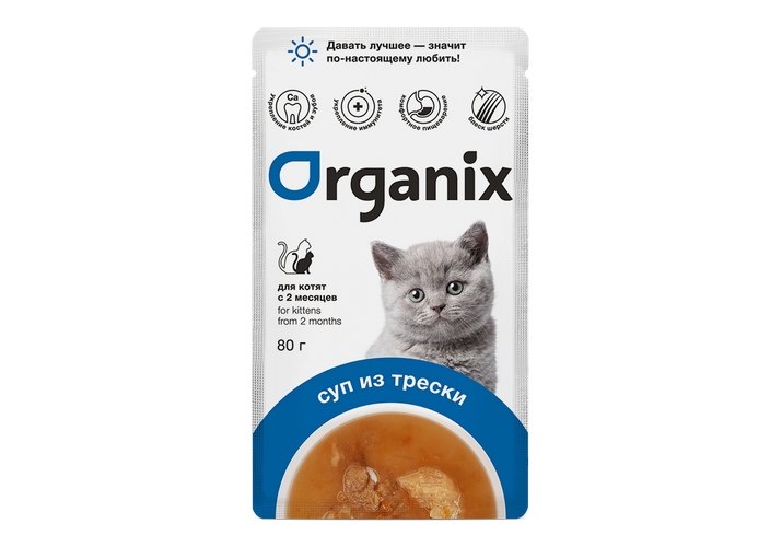 Organix Влажный корм Органикс для котят Суп из трески (цена за упаковку) 80г х 24шт