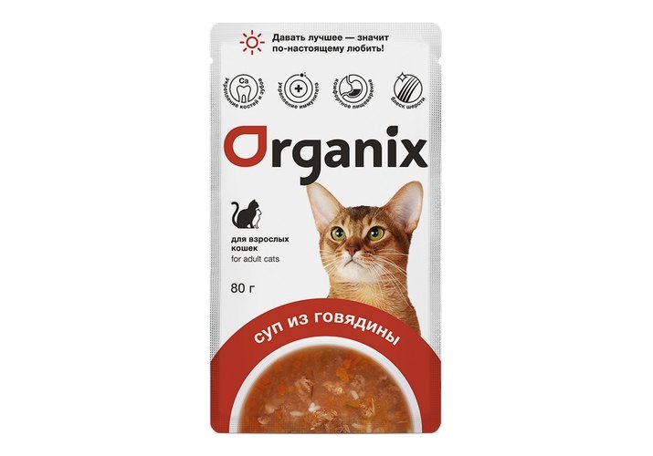 Organix Влажный корм Органикс для взрослых кошек Суп из говядины (цена за упаковку) 80г х 24шт