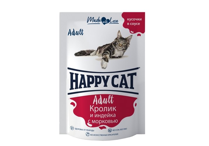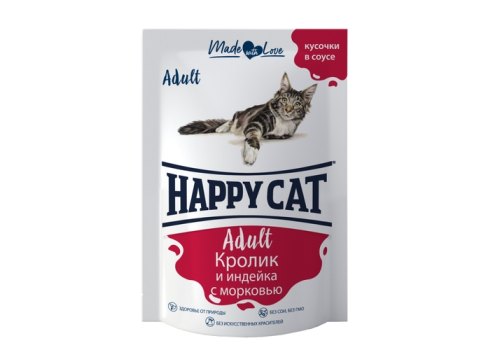 Happy Cat Паучи Хэппи Кэт для кошек Кролик и индейка с морковью в соусе (цена за упаковку, Россия) 85г х 24шт