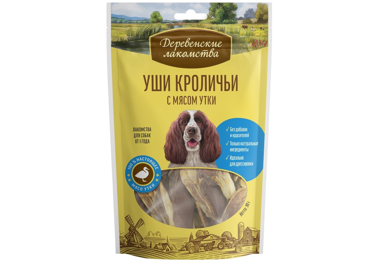 Деревенские лакомства 100% Мяса Уши Кроличьи с мясом Утки 90 г