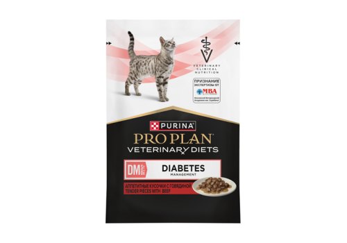PRO PLAN VETERINARY DIETS DM ST\OX DIABETES MANAGEMENT Лечебный Влажный корм Паучи ПРО ПЛАН Ветеринарная диета для взрослых кошек при диабете с говядиной (цена за упаковку) 85г х 26шт
