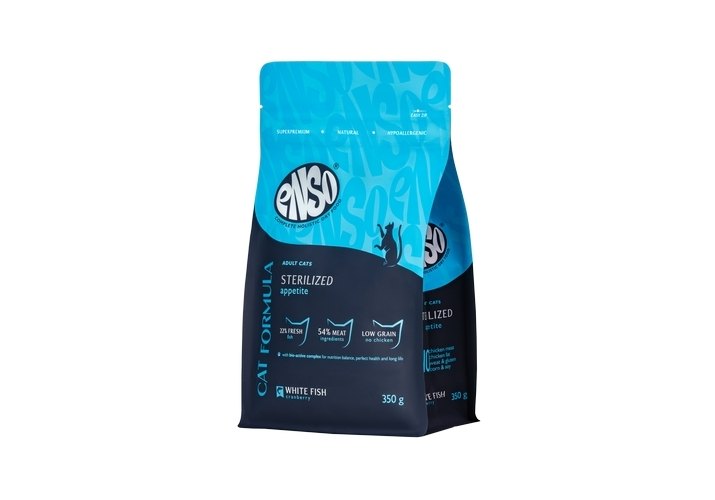 ENSO Cat formula Sterilized – сухой полнорационный корм для стерилизованных кошек со свежей белой рыбой с добавлением клюквы.