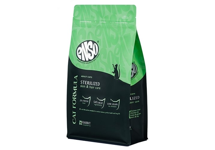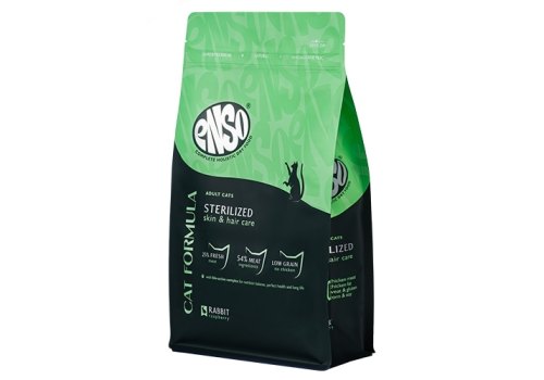 ENSO Cat formula Sterilized – сухой полнорационный корм для стерилизованных кошек со свежим кроликом с добавлением малины.