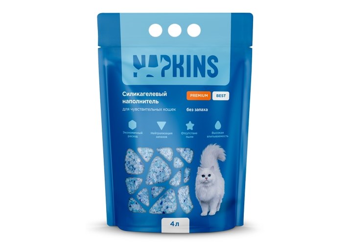 NAPKINS Силикагелевый впитывающий наполнитель Напкинс для чувствительных кошек без запаха 4 л