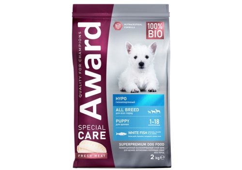 Award Special Care Hypo Сухой корм Авард для щенков от 1 месяца, беременных и кормящих собак всех пород Гипоаллергенный с Белой рыбой 2 кг