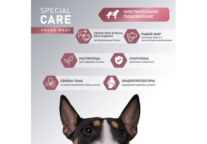 Сбалансированный полнорационный сухой корм со свежим мясом ягненка с добавлением спирулины и розмарина - это функциональное питание для взрослых собак всех пород, которое поддерживает баланс микрофлоры кишечника и улучшает пищеварение, обеспечивая комплексную заботу о здоровье вашего питомца на долгие годы.