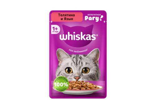 Это сбалансированный рацион, приготовленный так, как любит ваша кошка. Аппетитное рагу с телятиной и языком в густом соусе обязательно понравится вашей любимице. Рацион Whiskas® содержит все необходимое, чтобы еда вашей кошки была не только вкусной, но и полезной. Whiskas® поддержит иммунитет, позаботится о здоровом пищеварении и здоровье кожи и шерсти вашей кошки. Подходит для стерилизованных котов и кошек.