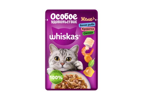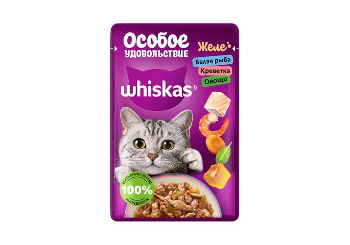 Белая рыба, креветка и овощи — сразу всё, о чём мечтала ваша кошка, в новой коллекции сбалансированных блюд WHISKAS® Особое удовольствие для замурррчательной жизни. В каждом из паучей содержится три основных ингредиента: разные виды мяса или морепродуктов смешиваются в нежнейшем соусе или желе, чтобы вы воплощали мечты своих любимцев. Подходит для стерилизованных котов и кошек.