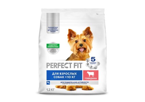 Perfect Fit Сухой корм Перфект Фит для взрослых собак мелких и миниатюрных пород для Поддержка активности Говядина 1.2 кг