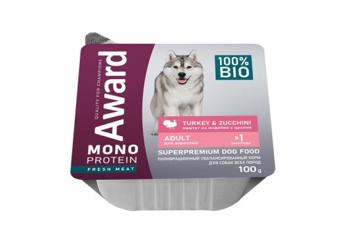 Award Monoprotein Влажный корм Авард для взрослых собак Паштет из индейки с цукини (цена за упаковку) 100г х 14шт
