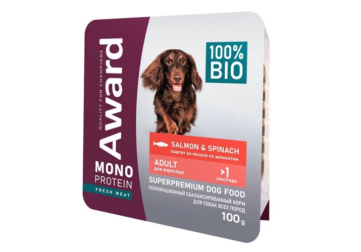 Award Monoprotein Влажный корм Авард для взрослых собак Паштет из лосося со шпинатом (цена за упаковку) 100г х 14шт