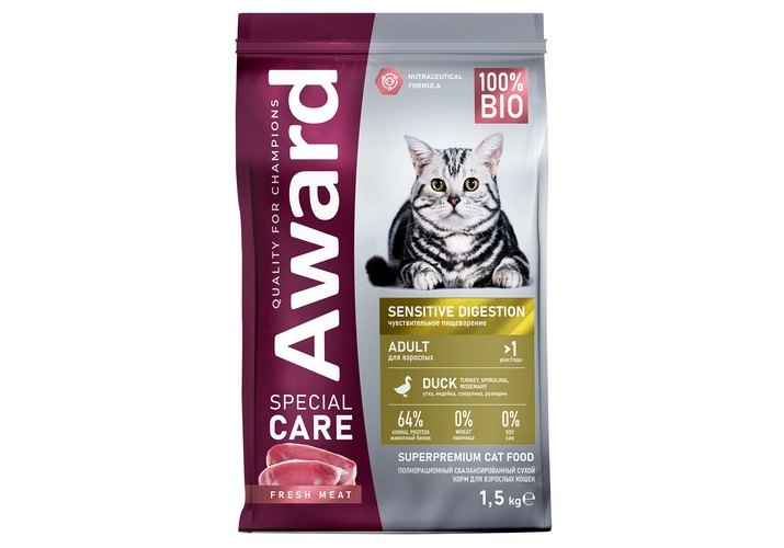 Award Special Care Sensitive Digestion Сухой корм Авард для взрослых кошек с Чувствительным пищеварением с Уткой 1,5 кг
