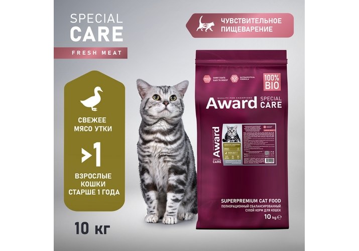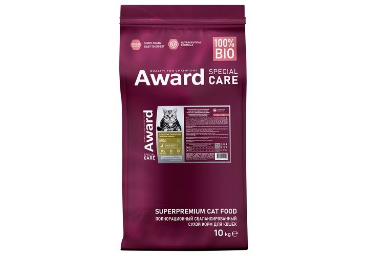 Award Special Care Sensitive Digestion Сухой корм Авард для взрослых кошек с Чувствительным пищеварением с Уткой 10 кг