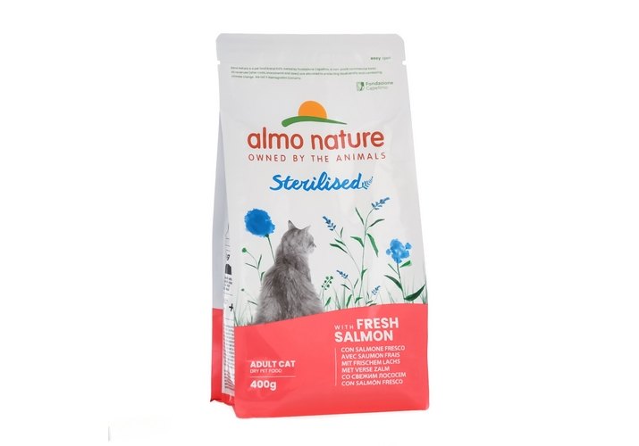 Almo Nature Sterilised Fresh Beef Cухой корм Алмо Натюр для стерилизованных кошек со cвежим Лососем и коричневым рисом 400 г