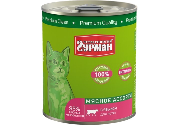 Четвероногий Гурман Мясное ассорти Консервы для Котят с Языком (цена за упаковку) 340г х 12шт