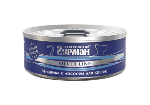 Четвероногий Гурман Silver Line Консервы Серебряная линия для кошек Индейка с лососем (цена за упаковку) 100г х 12шт