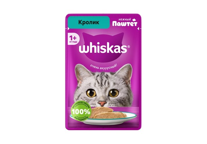 Это сбалансированный рацион, приготовленный именно так, как любит ваша кошка. Аппетитный паштет с кроликом подарит вашей любимице настоящее удовольствие. Рацион Whiskas содержит все необходимое, чтобы еда вашей кошки была не только вкусной, но и полезной. Whiskas поддержит иммунитет, позаботится о здоровом пищеварении и здоровье кожи и шерсти вашей кошки. Подходит для стерилизованных котов и кошек.
