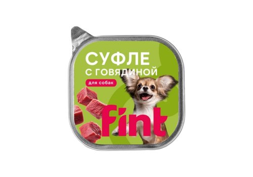 Суфле из говядины FINT для взрослых собак мелких и средних пород. Легко усваивается, благодаря нежной текстуре подходит для кормления питомцев с чувствительным пищеварением.