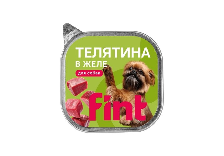 Fint Влажный корм Финт для собак мелких и средних пород с Телятиной в желе (цена за упаковку) 100г х 15шт