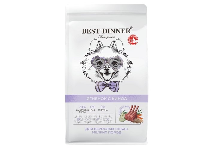 Best Dinner Monoprotein Сухой корм Бест Диннер для собак мелких пород Ягненок и Киноа 1,5 кг