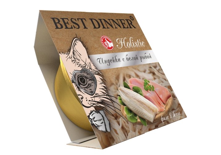Best Dinner Holistic Консервы Бест Диннер Холистик Стерилизованных кошек Мясные волокна в желе Индейка с Белой рыбой (цена за упаковку) 75г х 6шт