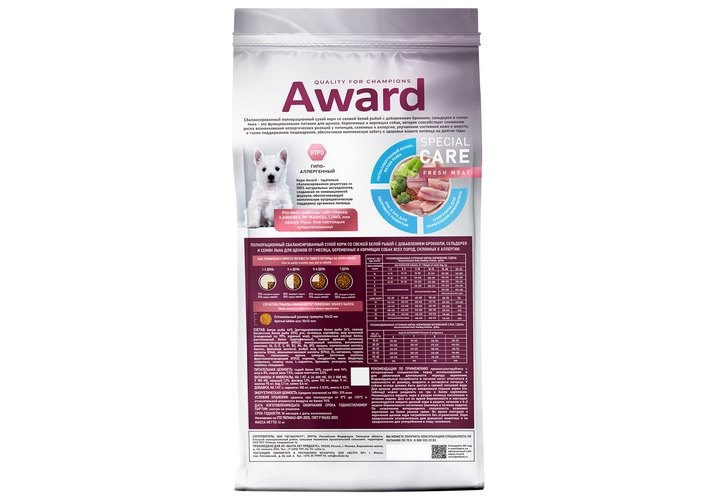 AWARD — это сухие и влажные корма для собак и кошек класса суперпремиум российского производства. Они разработаны профессиональными отечественными диетологами и содержат все необходимое для гармоничного развития питомцев.