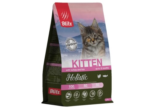 Blitz Holistic Kitten Полнорационный сухой корм Блиц для котят, беременных и кормящих кошек Индейка и рыба 1,5 кг