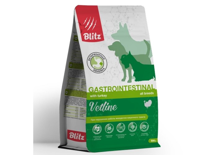 Важно, что корм Blitz Gastrointestinal восполняет потерю электролитов, таких как натрий, калий, кальций и магний, которые часто вымываются при расстройствах ЖКТ.