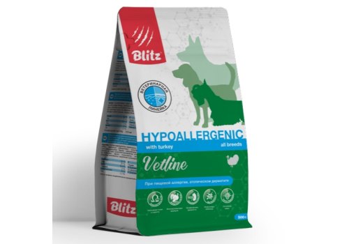 Blitz Vetline Hypoallergenic Диетический полнорационный сухой корм Блиц для взрослых собак при пищевой аллергии 500 г
