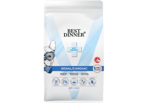 Best Dinner Vet Profi Renal Cardiac Полнорационный диетический сухой корм Бест Диннер для взрослых собак всех пород при Острой болезни почек и Заболеваниях сердца 12 кг