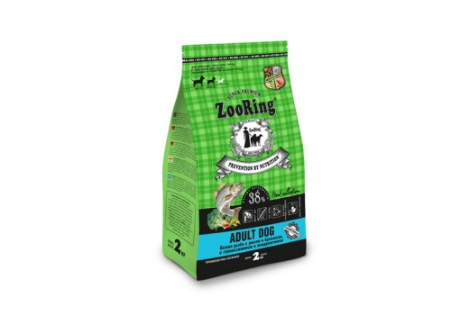 ZooRing Adult Dog Сухой корм Зооринг для взрослых собак всех пород склонных к аллергии Белая Рыба с рисом и брокколи 2 кг