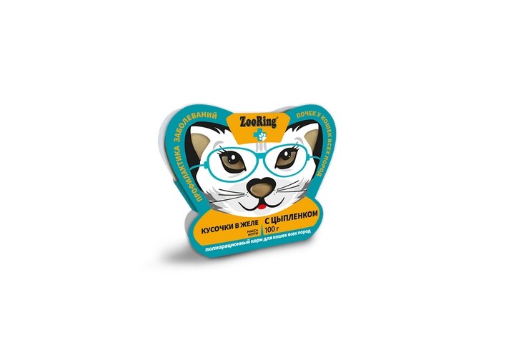 ZooRing Влажный консервированный корм Зооринг для кошек Профилактика заболеваний почек кусочки в желе с Цыпленком (цена за упаковку) 100г х 10шт