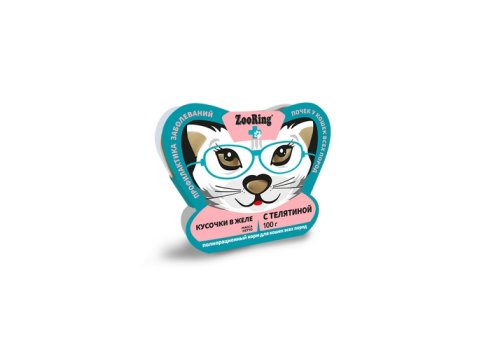 ZooRing Влажный консервированный корм Зооринг для кошек Профилактика заболеваний почек кусочки в желе с Tелятиной (цена за упаковку) 100г х 10шт