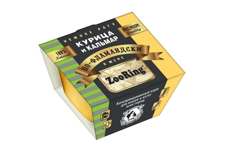 ZooRing Корм консервированный Зооринг для кошек и котят всех пород Нежное рагу по-Фламандски Курица и Кальмар в желе (цена за упаковку) 75г х 12шт