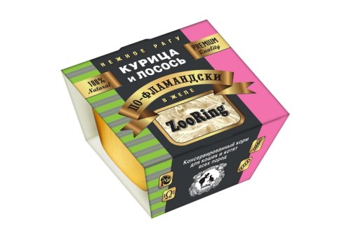 ZooRing Корм консервированный Зооринг для кошек и котят всех пород Нежное рагу по-Фламандски Курица и Лосось в желе (цена за упаковку) 75г х 12шт