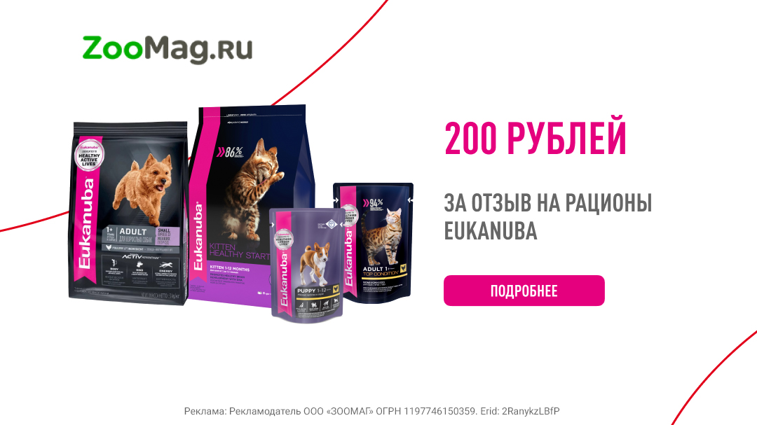Получите 200 руб. за отзыв о продукции Eukanuba для кошек и собак!
