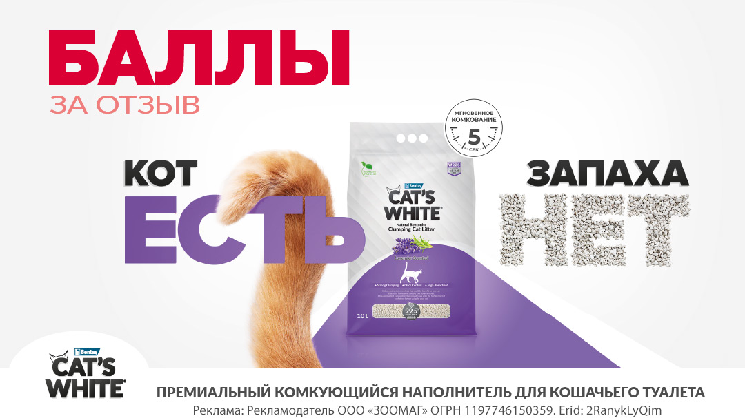 Получите 100 руб. за отзыв о продукции Cat's White для кошек!